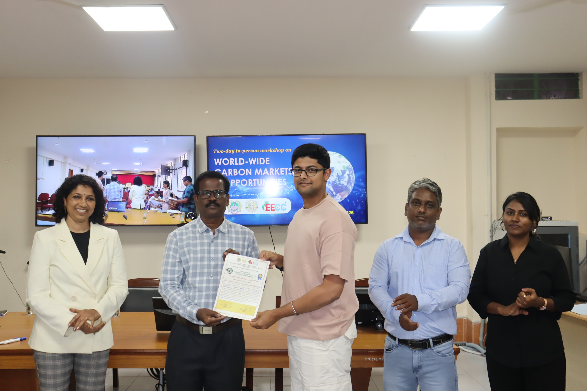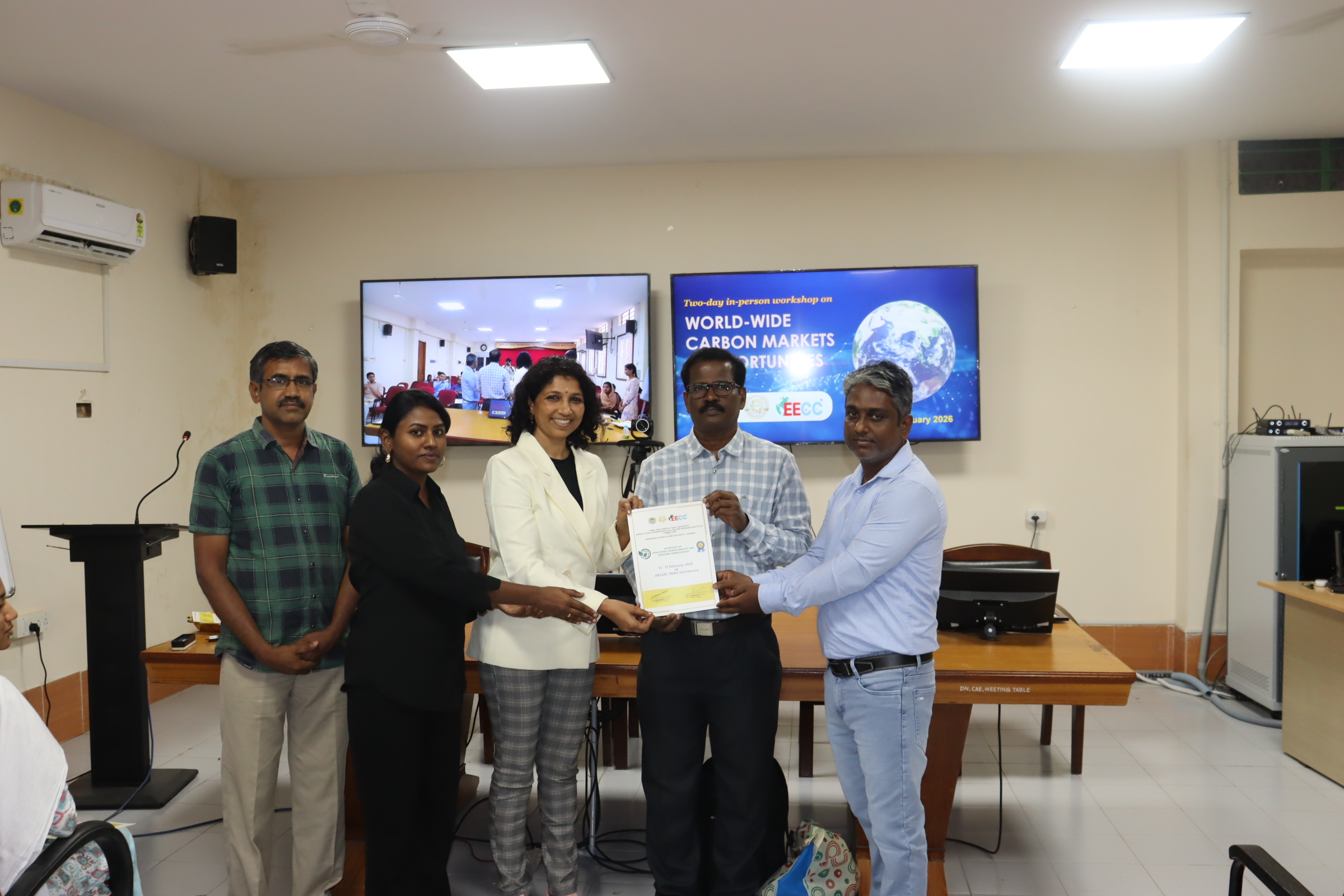 Dt 17.02.2026 உலகளாவிய கார்பன் சந்தைகள் மற்றும் வளர்ந்து வரும் வாய்ப்புகள் குறித்த பயிலரங்கு TNAU-வில் நடைபெற்றது. / image 1 / image 2 / image 3 / image 4