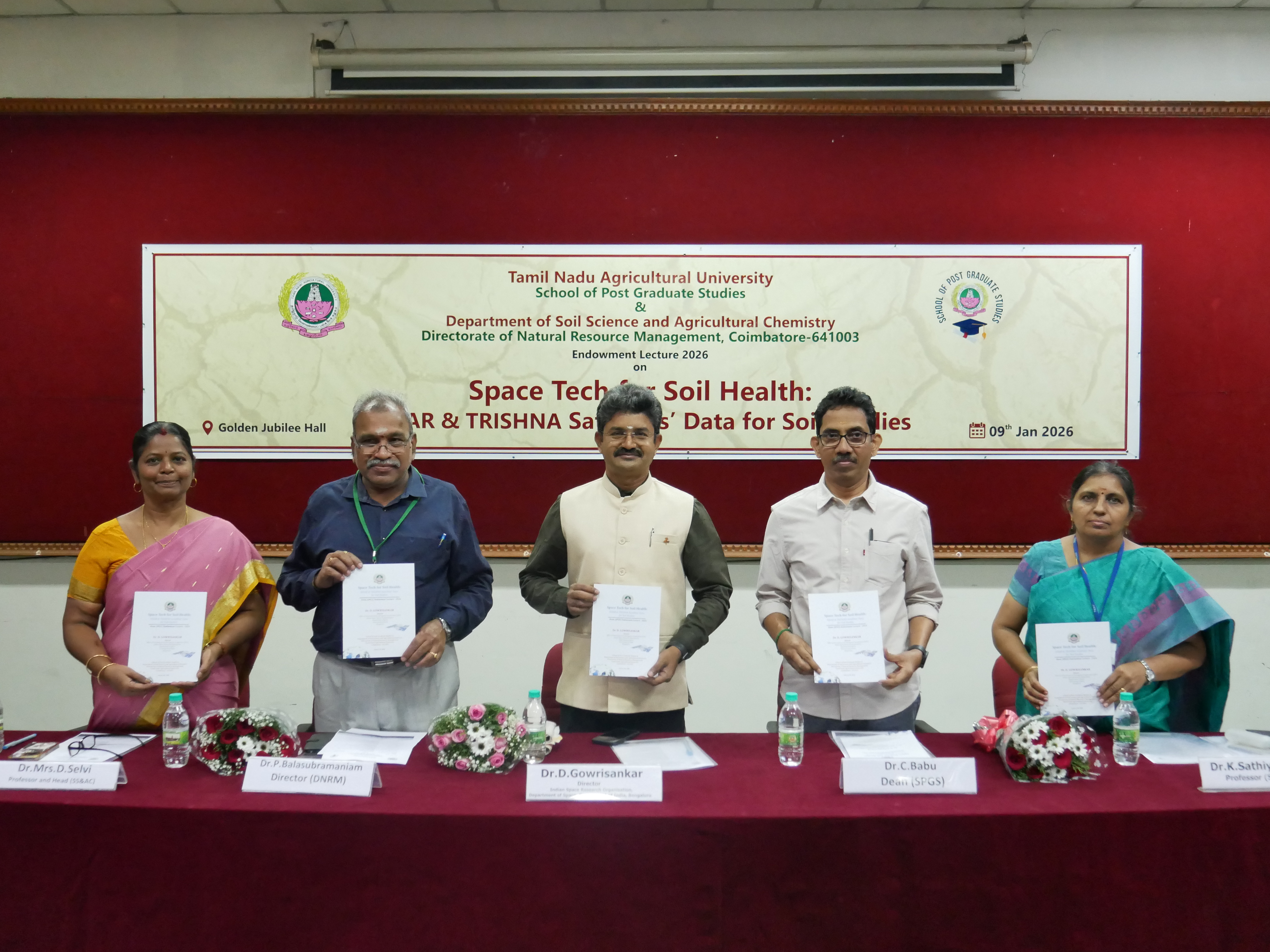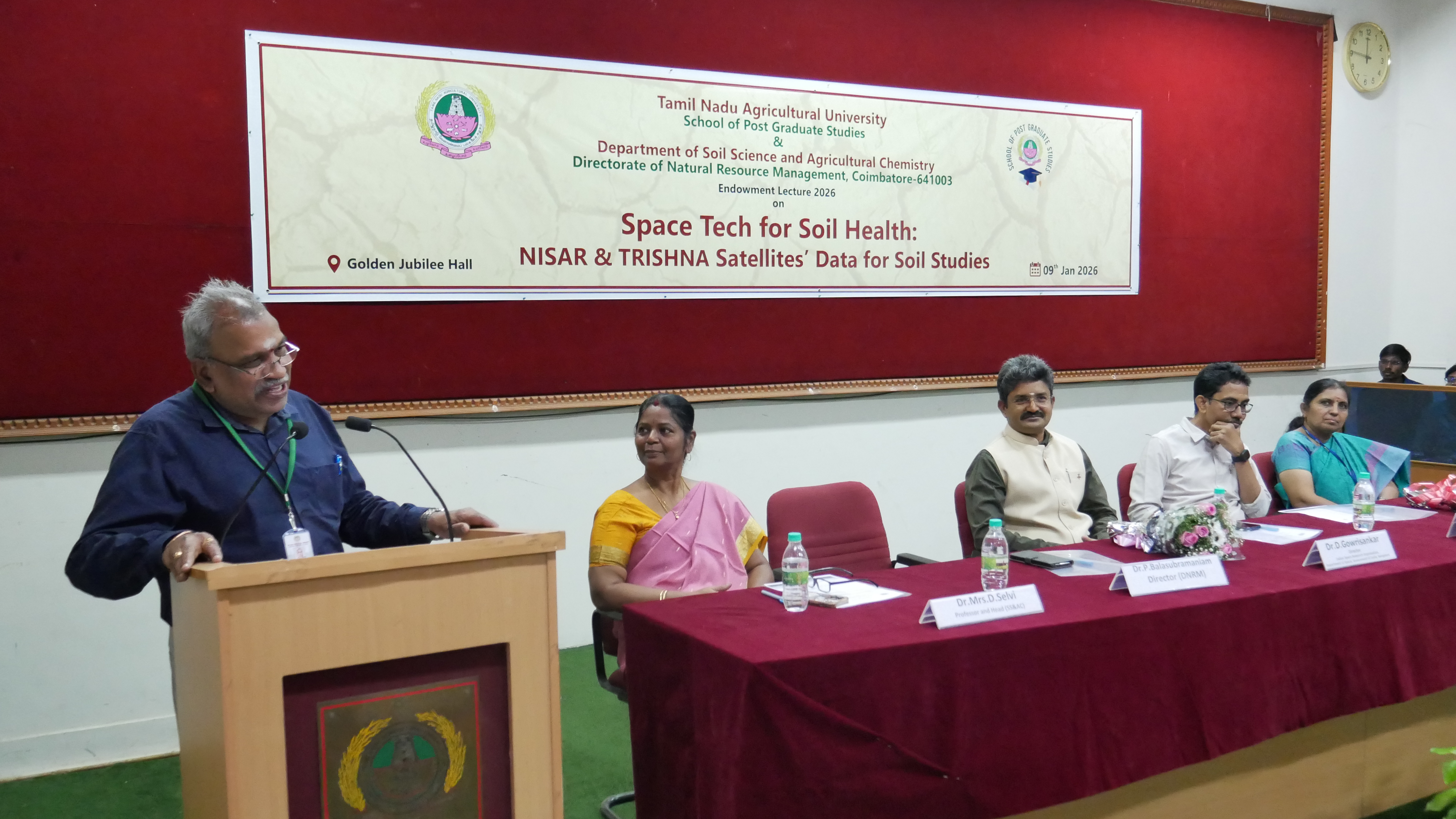 Dt 12.01.2026 TNAU, மண் ஆரோக்கியத்திற்கான விண்வெளி தொழில்நுட்பம் குறித்த அறக்கட்டளை விரிவுரையை நடத்தியது. / image 1 / image 2 / image 3