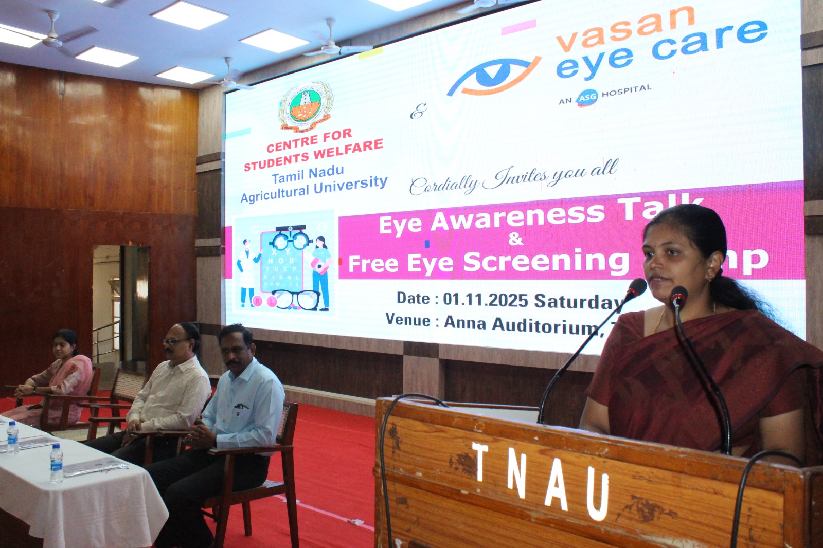 Dt 03.11.2025 TNAU Eye Care Awareness Programme and Free Eye Camp. / image 1 / image 2 / image 3 / image 4